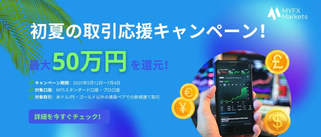 【2025年最新】最大50万円ボーナス&1,000倍レバレッジ!MYFX Markets 初夏のFX取引応援キャンペーン開催中|初心者から上級者まで&ゼロカット完備で安心スタート